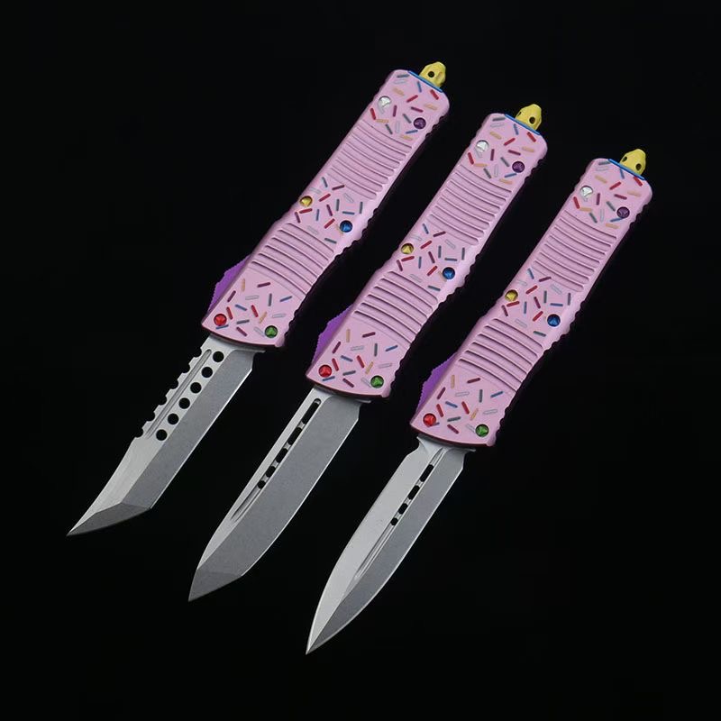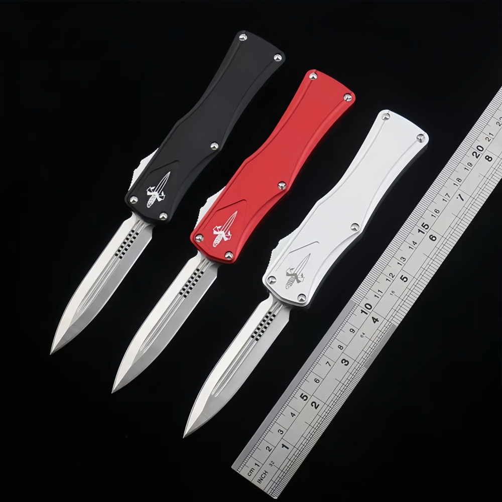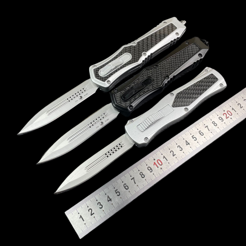 Microtech Silver White Handle UT OTF Straight Jump Knife