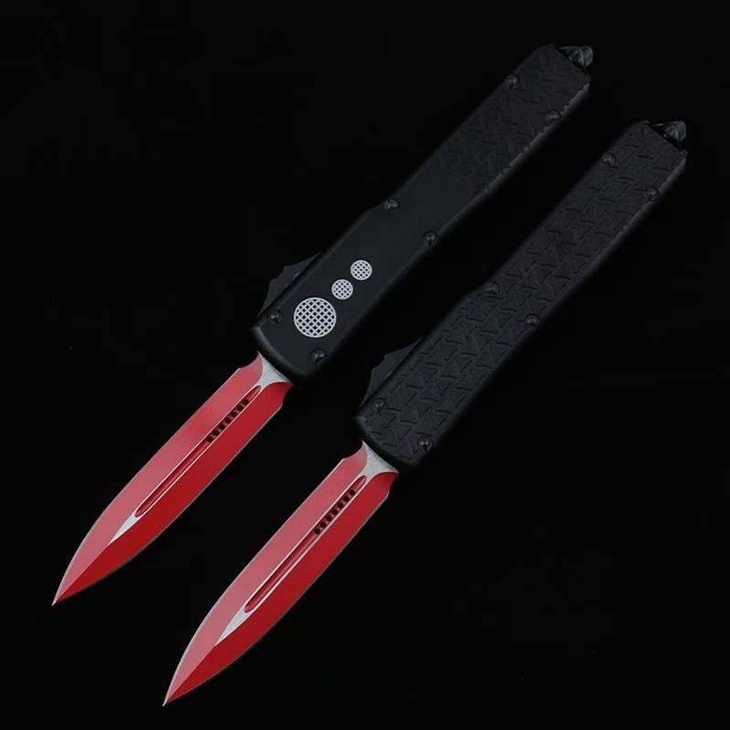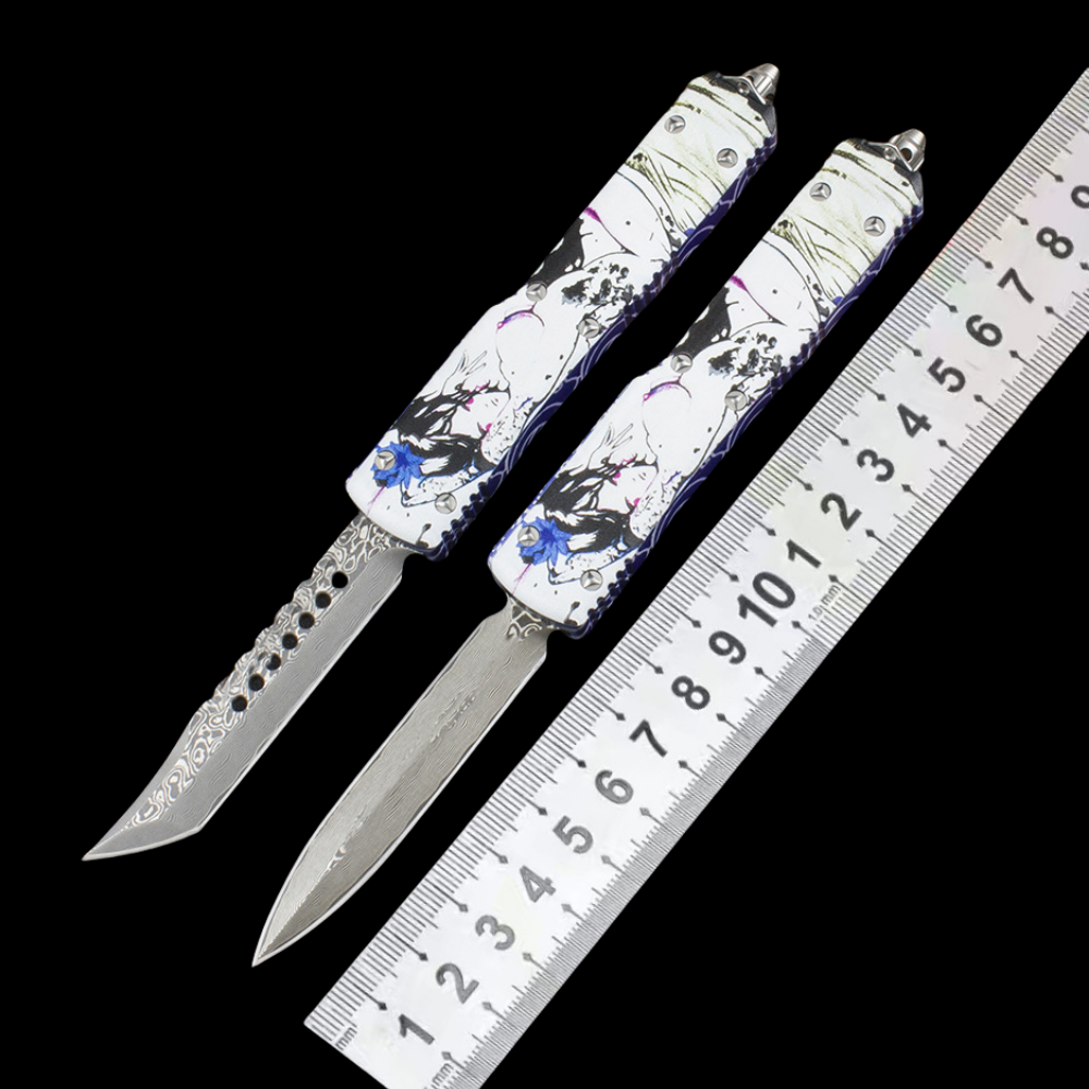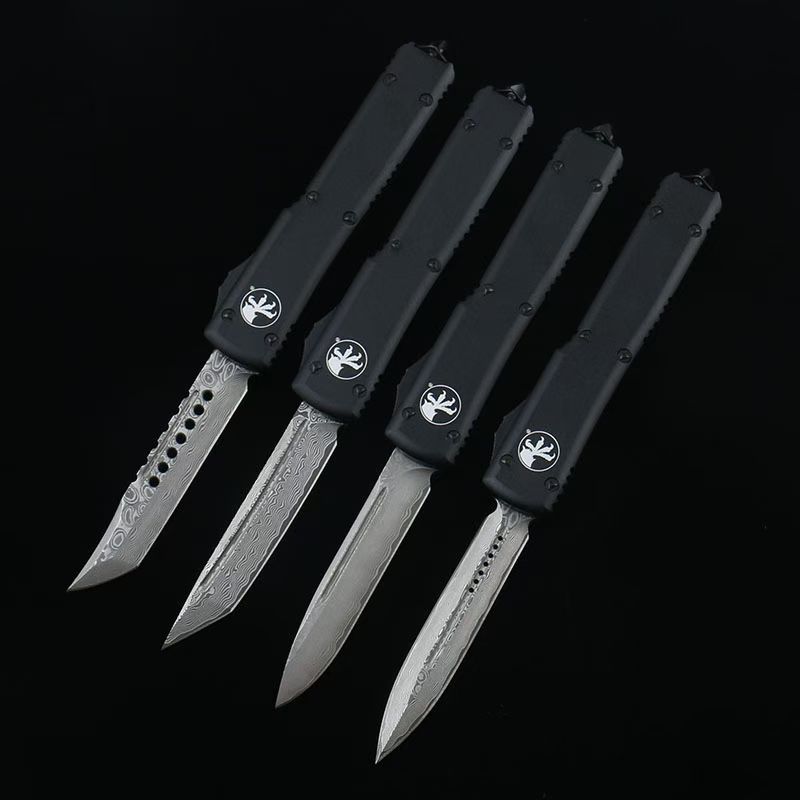 Microtech Black Handle UT Damascus Steel OTF Knife