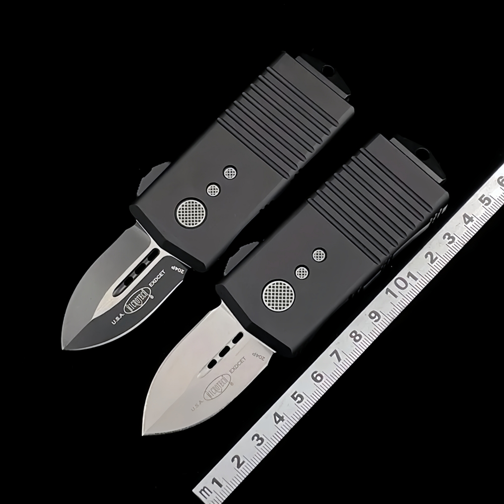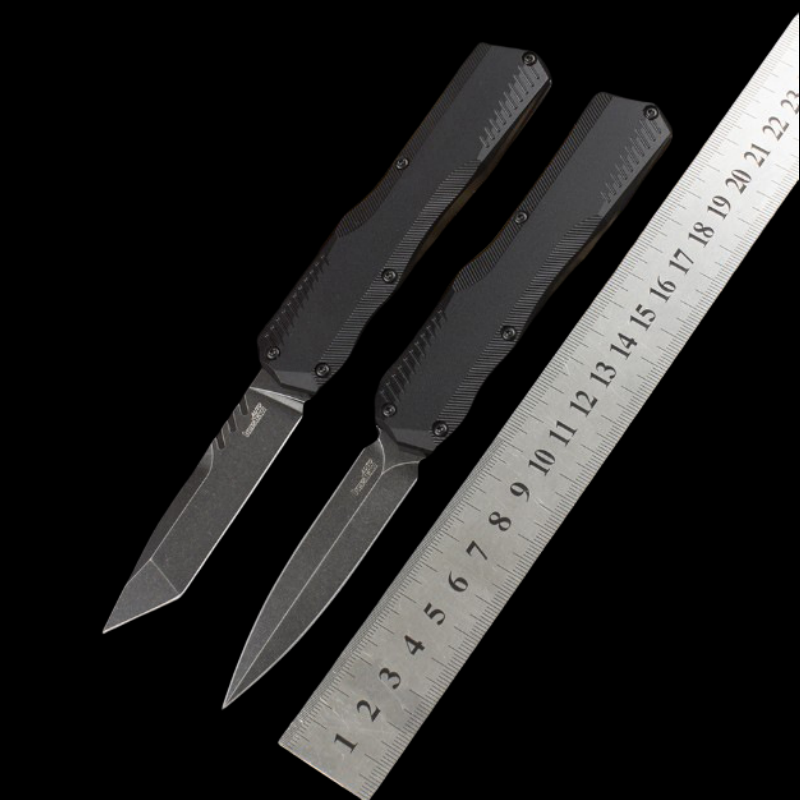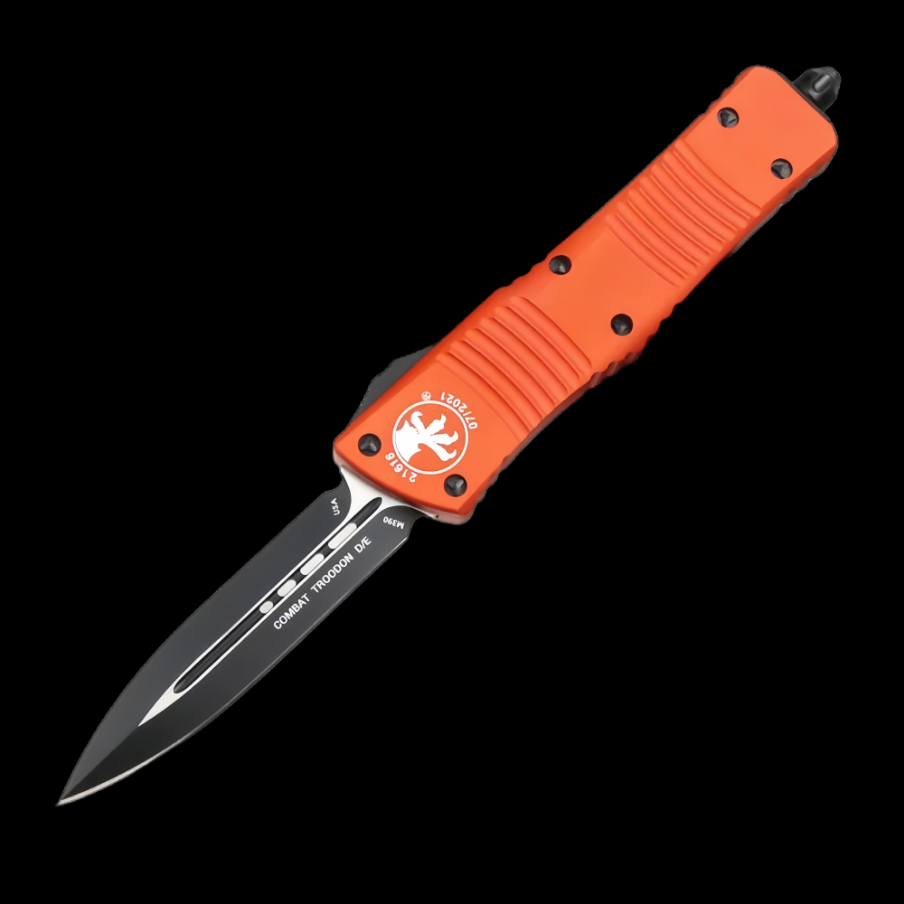 OTF micro-tech black handle Halo 6 lever straight jump knife