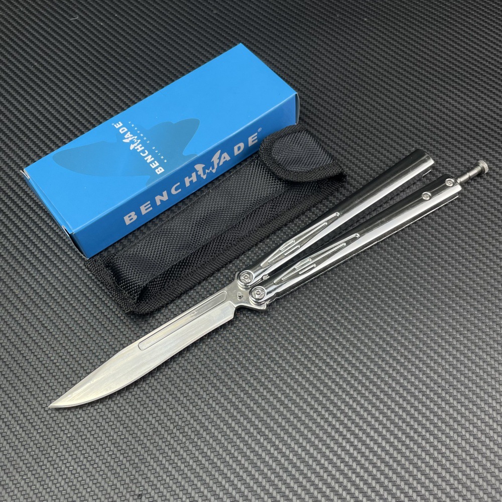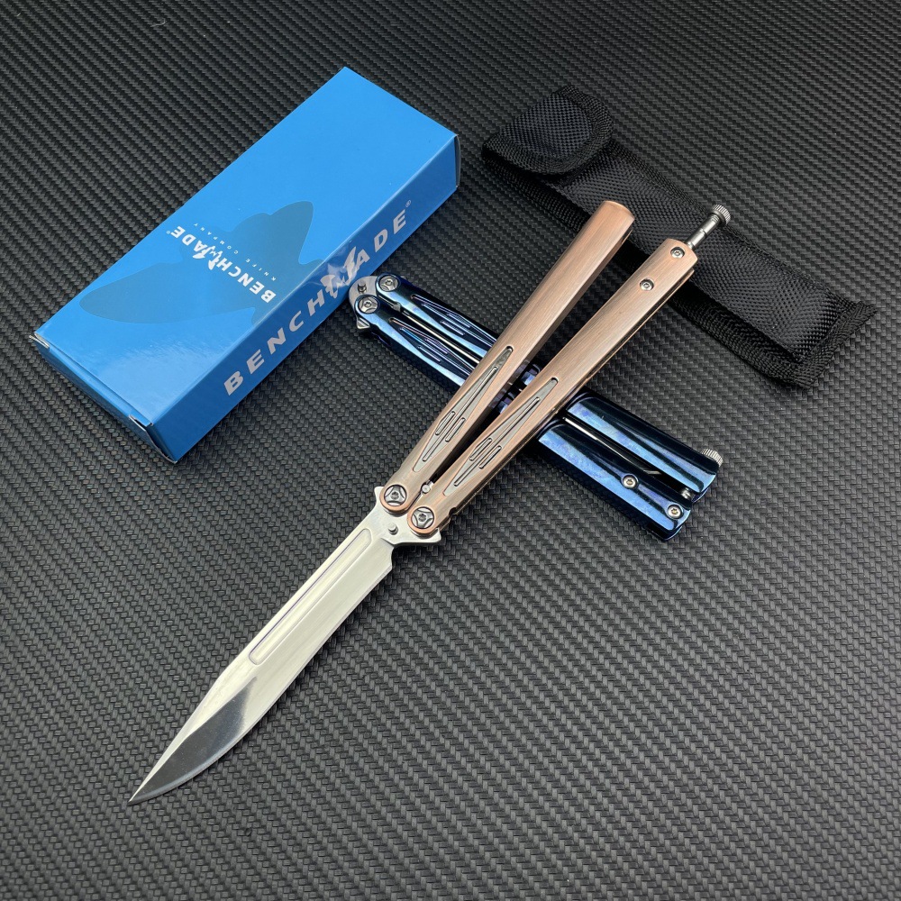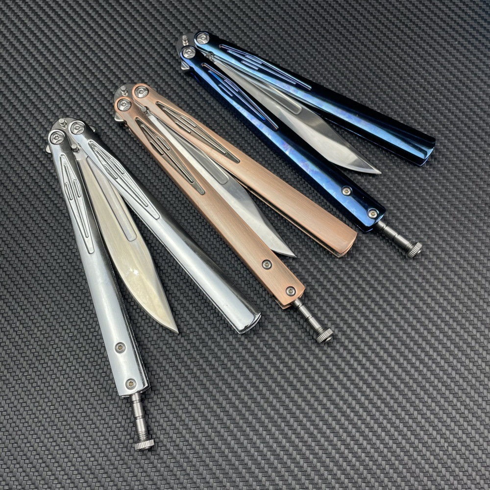 Product name: Classic alloy handle butterfly knifeOverall length: 210mm/8.27 inchesBlade length: 90mm/3.54 inchesHandle length: 130mm/5.12 inchesBlade width: 20mm/0.79 inchesBlade thickness: 2mm/0.08 inchesBlade material: D2 steelBlade weight: 130gHardness: 58-59HRCHandle material: alloy