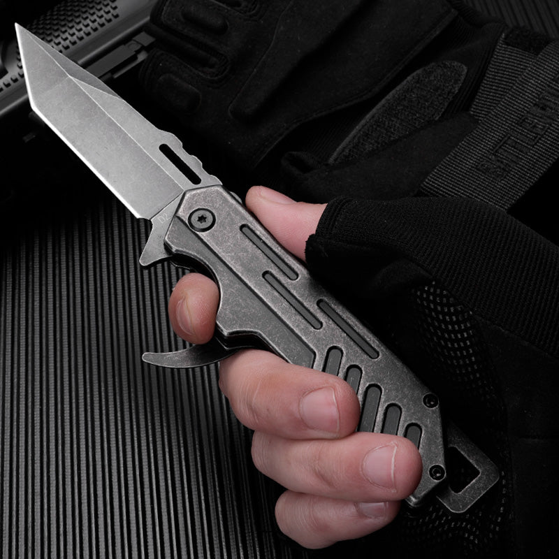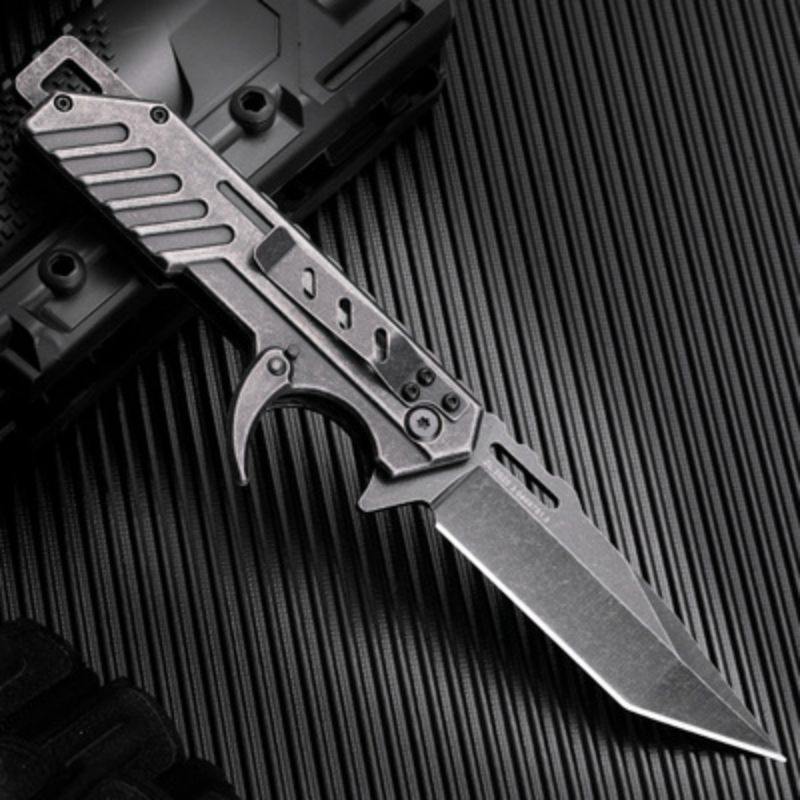 Name: Arafu D2 Steel Folding KnifeTotal length: 220mm/8.66 inchesHandle length: 120mm/4.72 inchesBlade length: 98mm/3.86 inchesBlade width: 20mm/0.79 inchesBlade thickness: 3mm/0.12 inchesHardness: 59-60HRCBlade material: D2 steelHandle material: Alloy steelNet weight of knife: 130g
