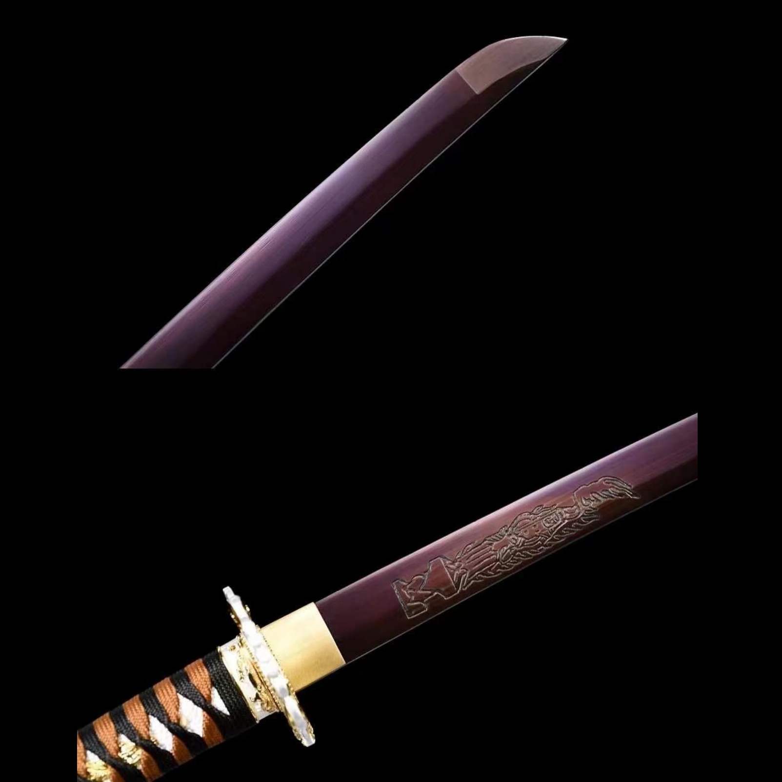 Blade: High-energy manganese steel forged blade, baked purple double-sided corrosion engraving