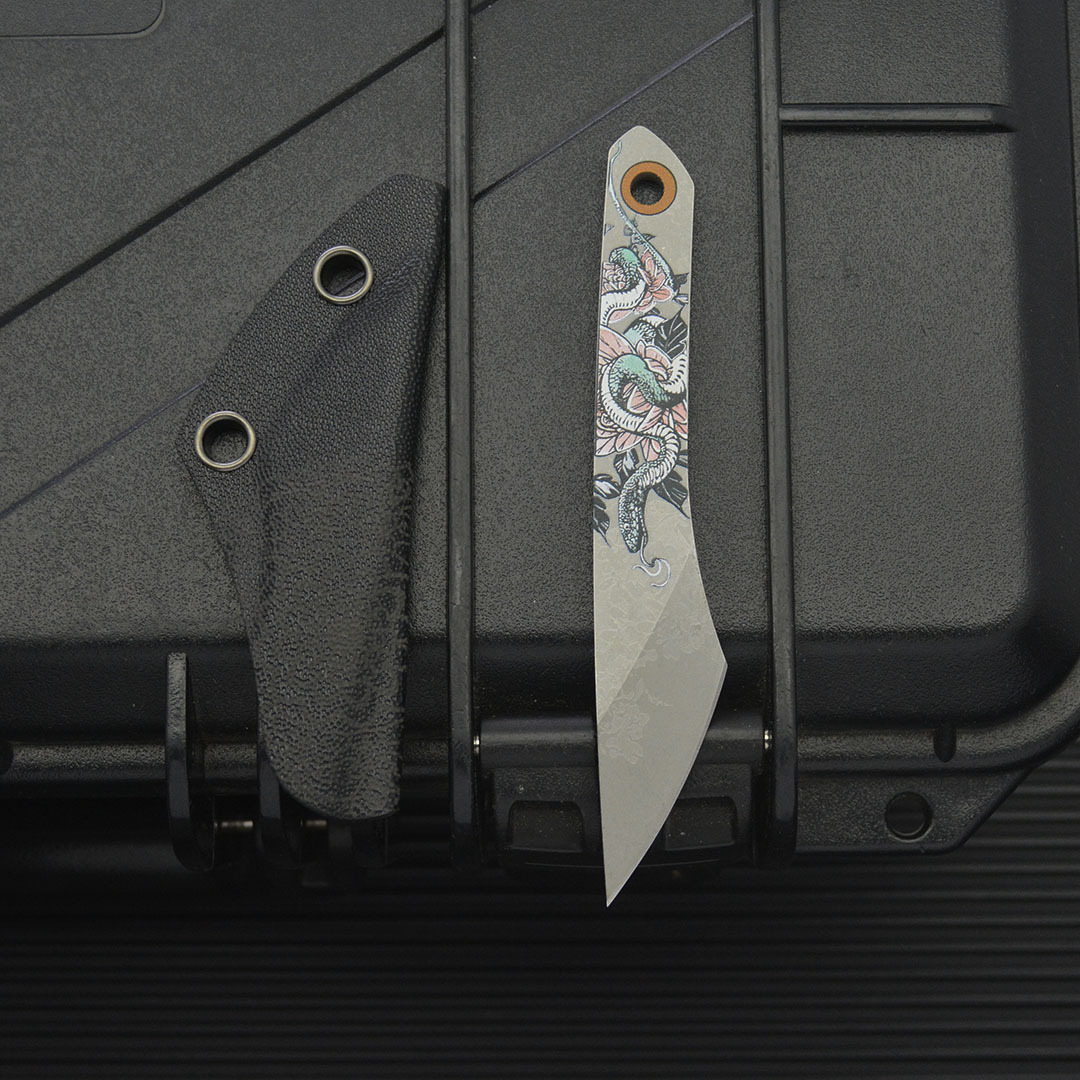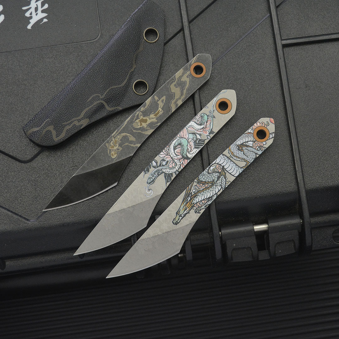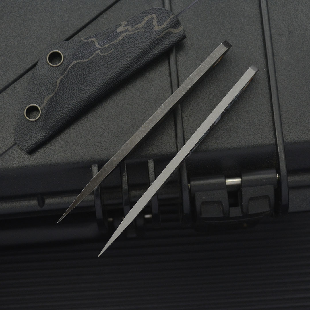 Product Name: EDC Mini Neck KnifeOverall Length: 115mm / 4.53 inchesBlade Length: 40mm / 1.57 inchesHandle Length: 75mm / 2.95 inchesBlade Width: 18mm / 0.71 inchesBlade Thickness: 4mm / 0.16 inchesBlade Material: 8Cr13MoV SteelWeight: 50gHardness: 58-59 HRCSheath: K-Scabbard