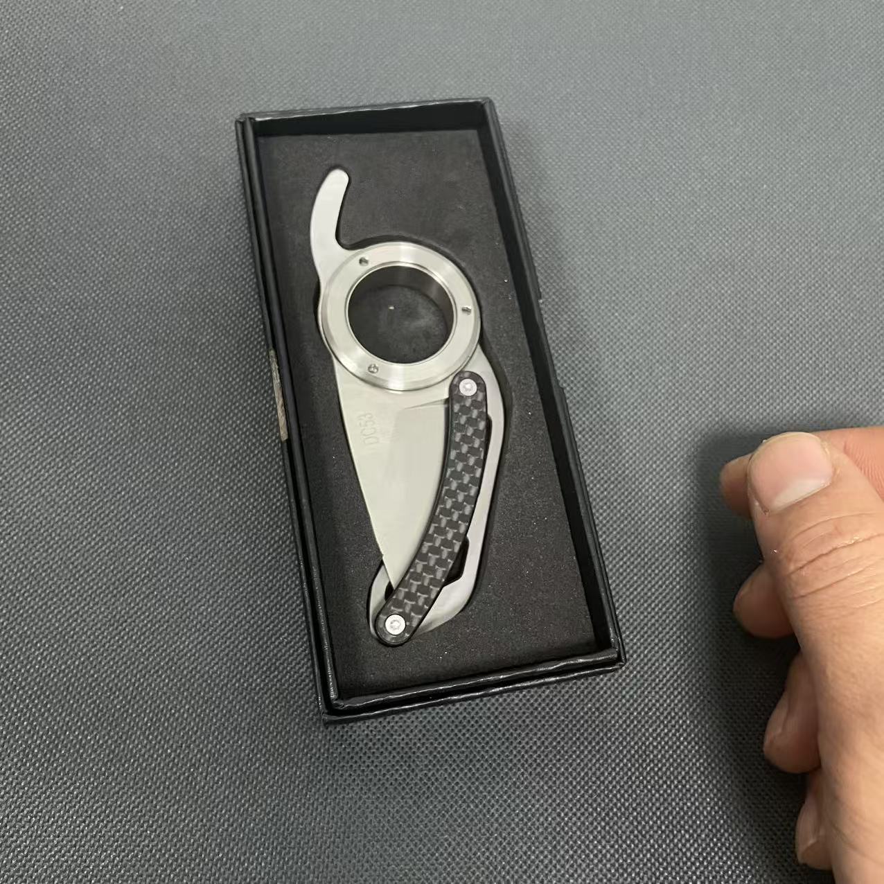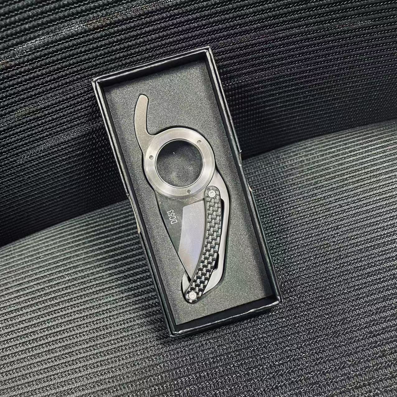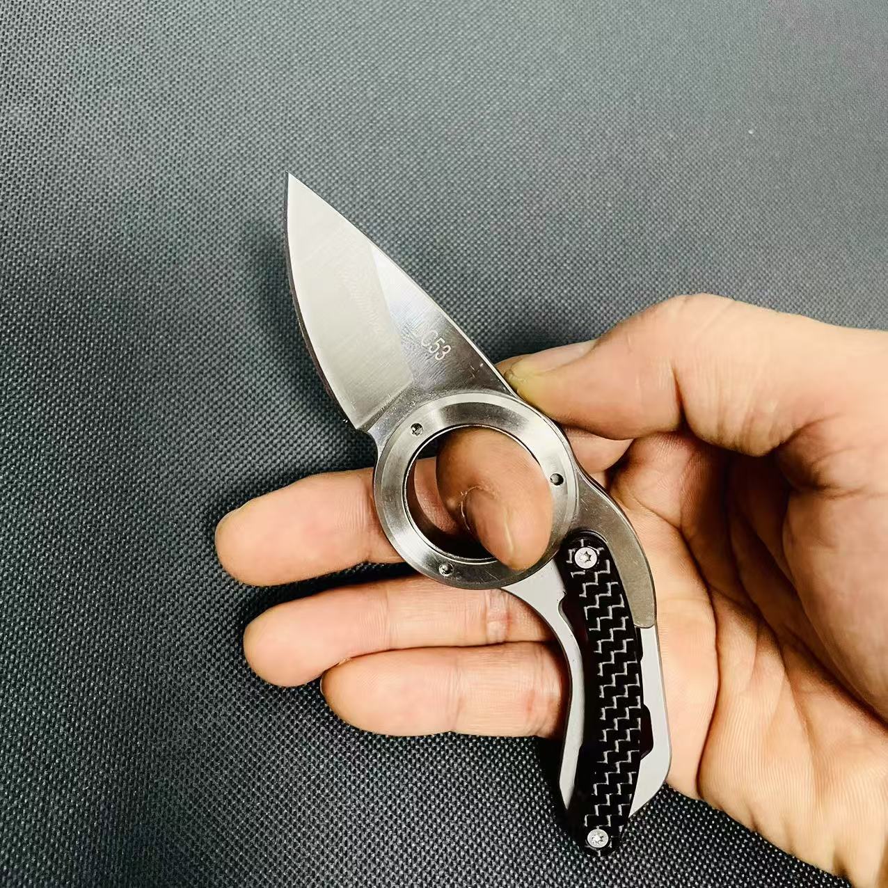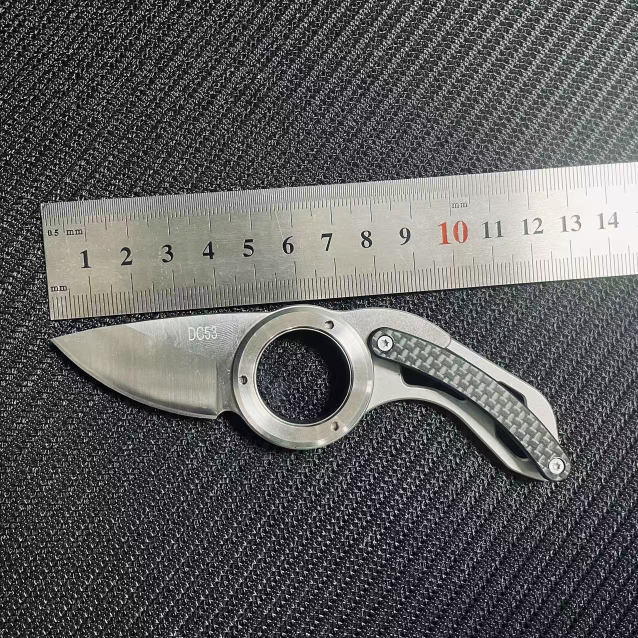Product name: Ring mini self-defense mechanical folding knifeOverall length: 130mm/5.12 inchesBlade length: 40mm/1.57 inchesHandle length: 90mm/3.54 inchesBlade width: 25mm0.98 inchesBlade thickness: 3mm/0.12 inchesBlade material: D2 steelBlade weight: 60gHardness: 58HRCHandle material: all steel