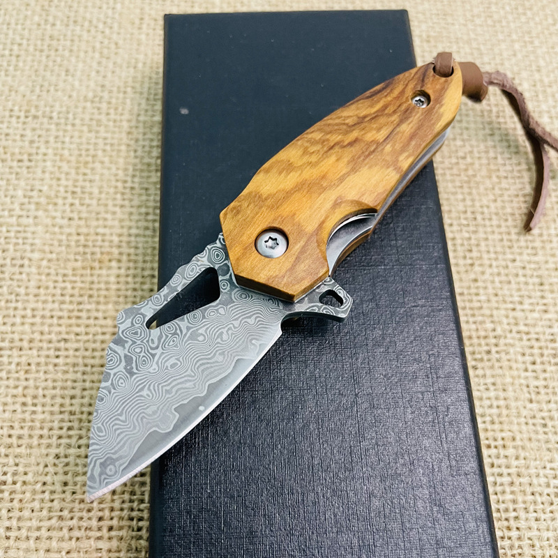 Model: Damascus steel mini folding knife, high hardness portable pocket knife