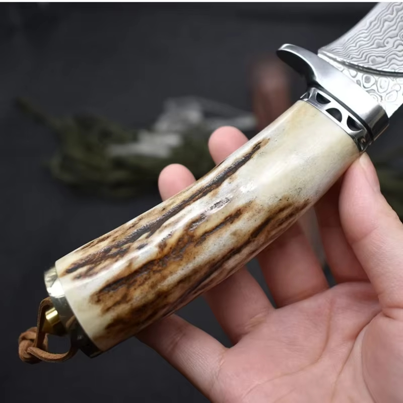 Product Name: Antler Handle Damascus Steel Fixed Blade Hunting Knife