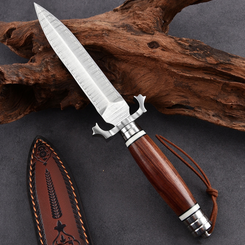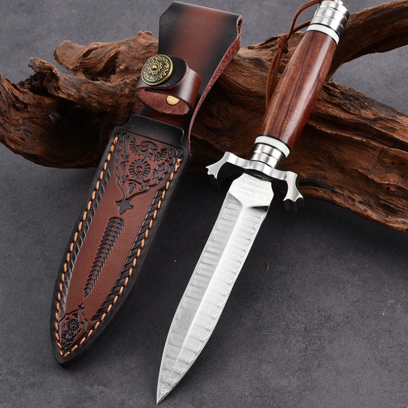 Product name: Soya Damascus Holy SwordOverall length: 265mm/10.43 inchesBlade length: 120mm/4.72 inchesHandle length: 120mm/4.72 inchesBlade width: 29mm/1.14 inchesBlade thickness: 3mm/0.12 inchesBlade material: Damascus steelBlade weight: 280gHardness: 60HRCHandle material: Rosewood