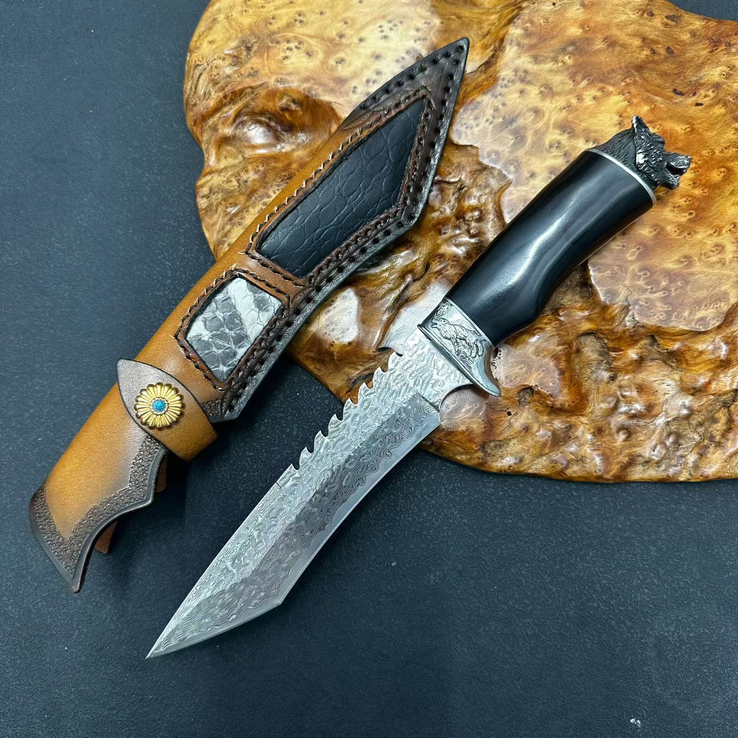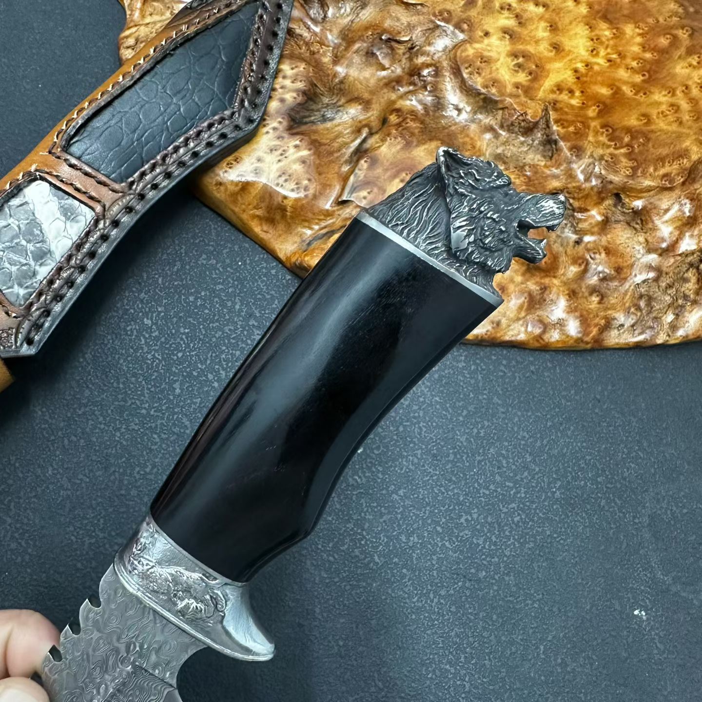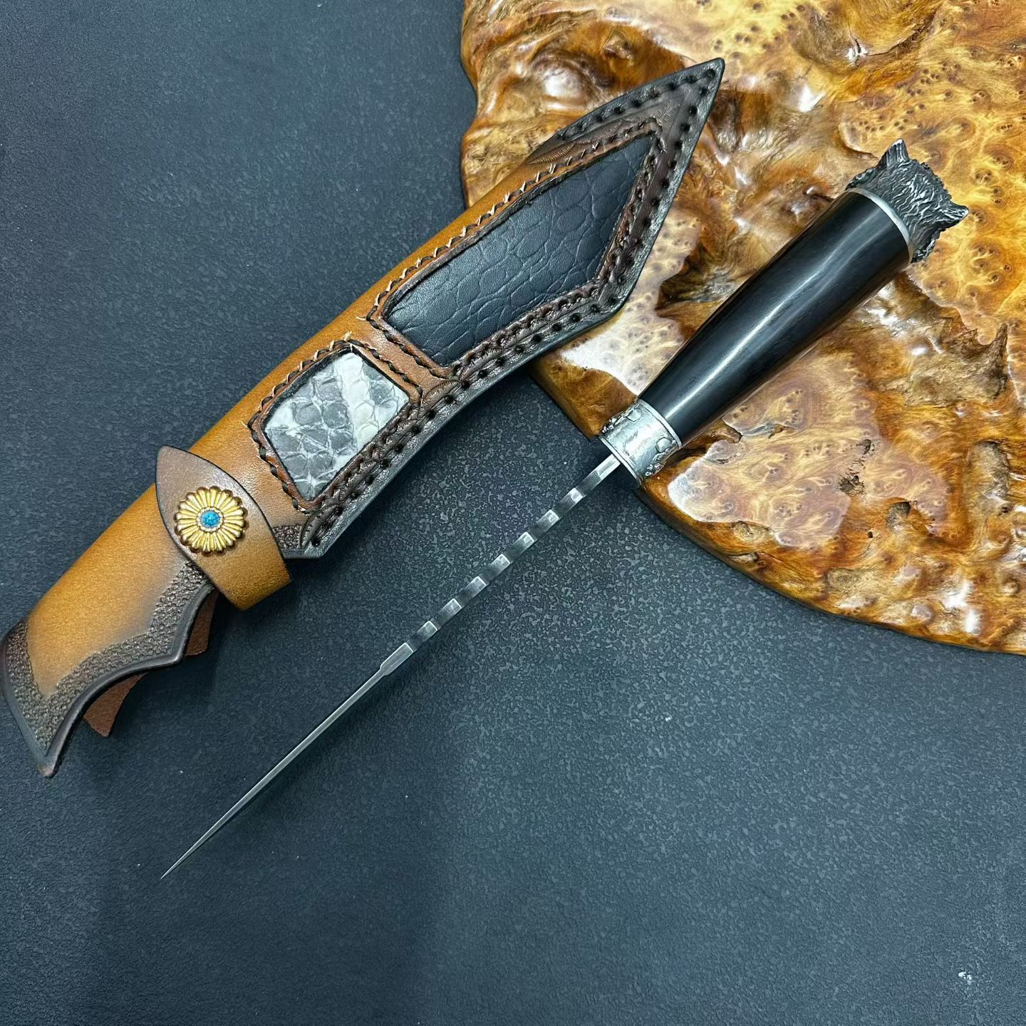 Sheath: Imported Italian Vegetable Tanned Leather, Engraved and Hand-stitched
