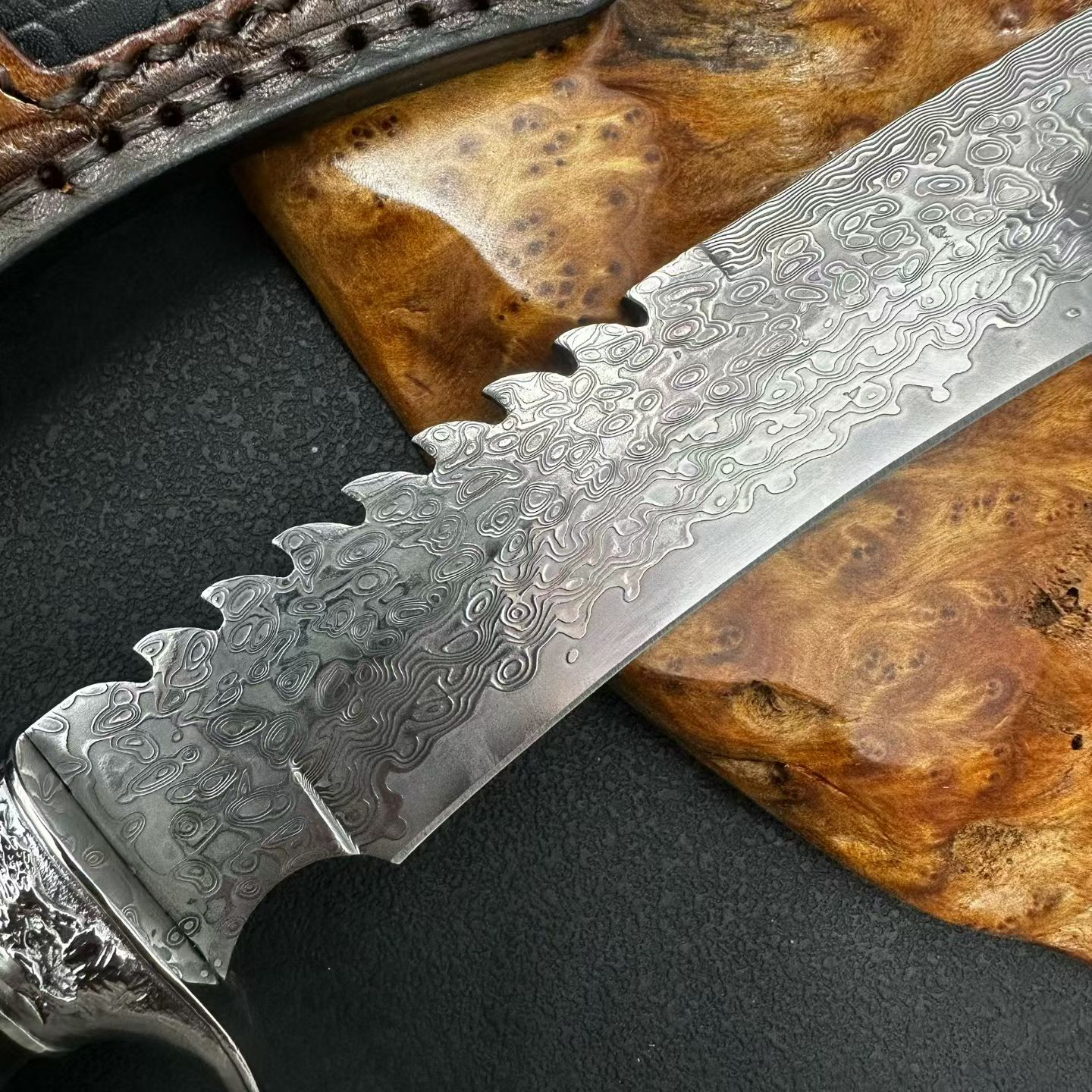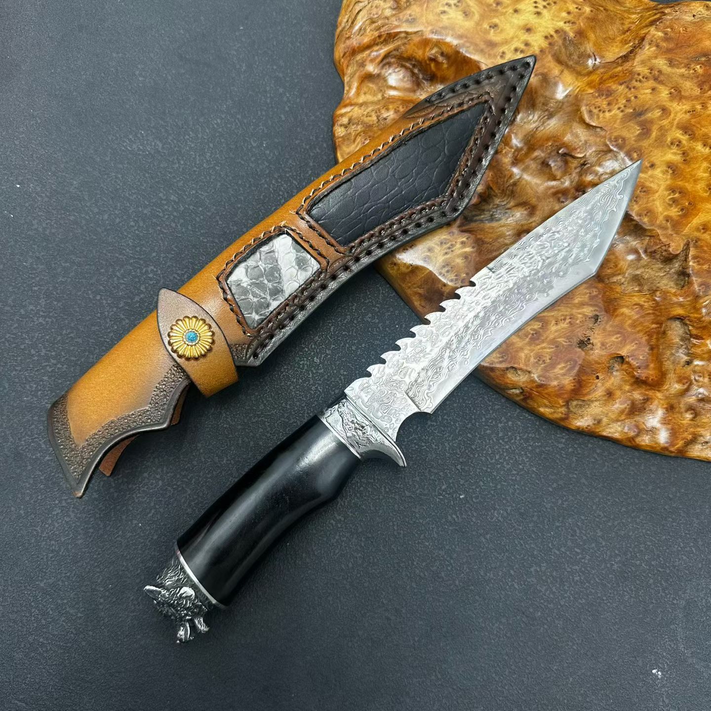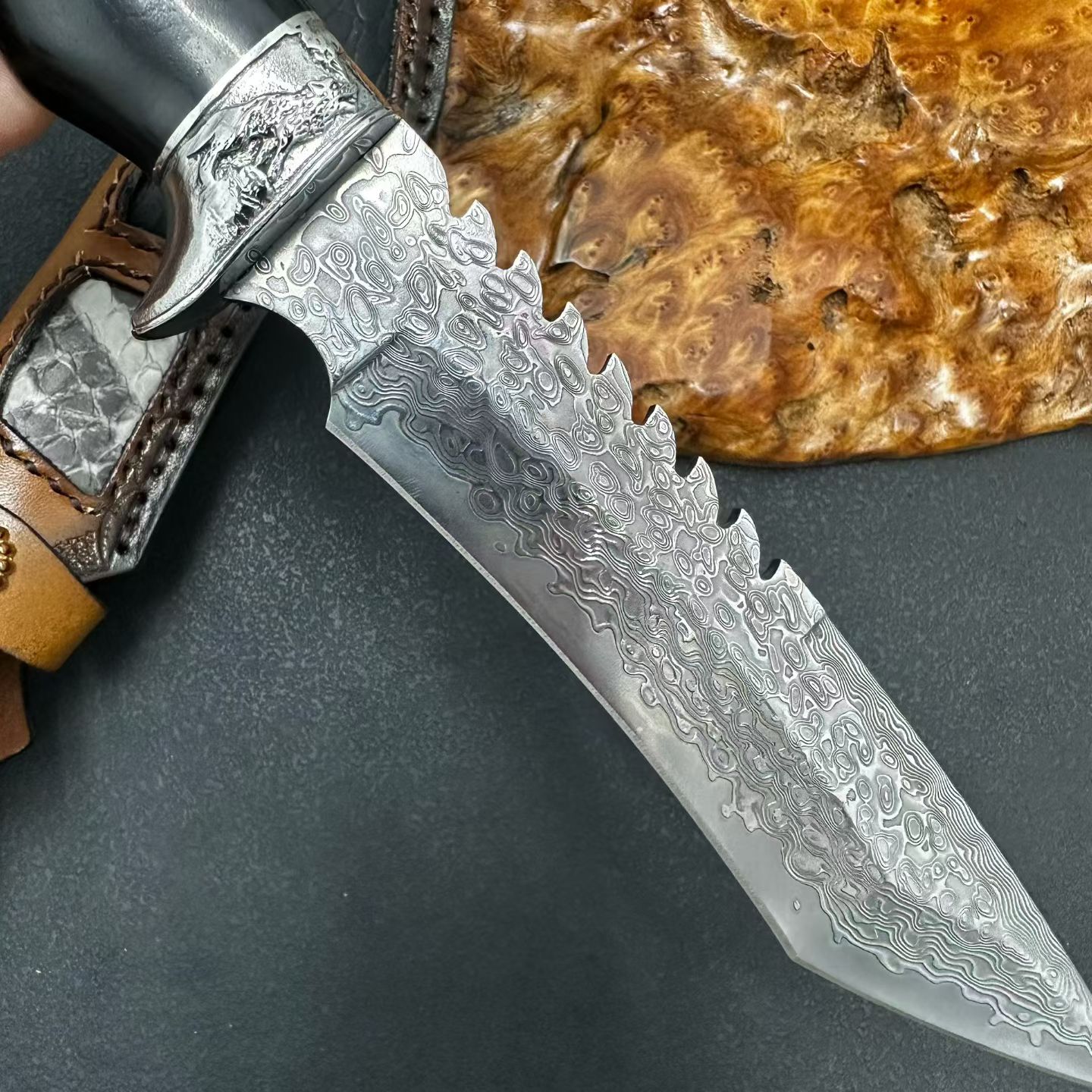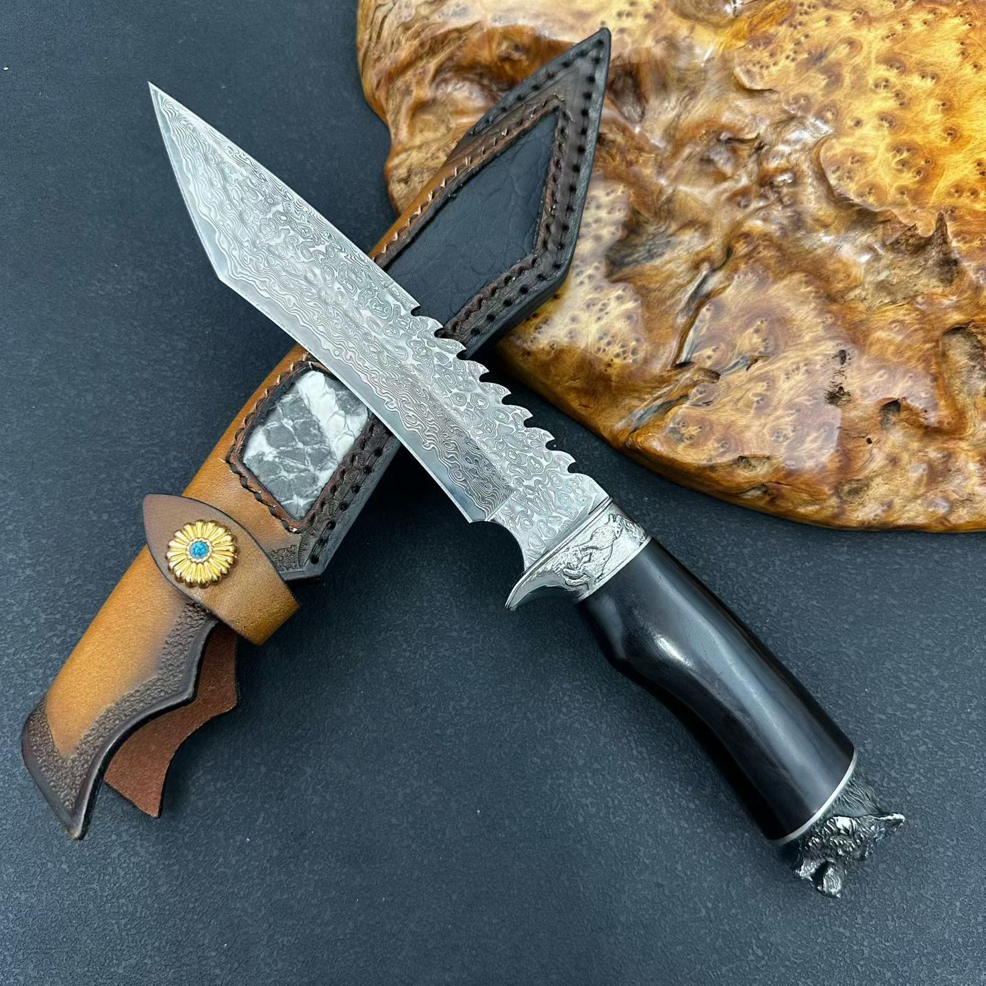 Sheath: Imported Italian Vegetable Tanned Leather, Engraved and Hand-stitched
